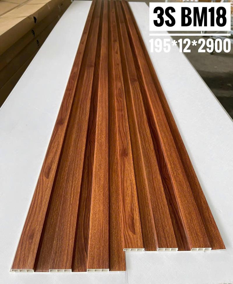 Lam 3 sóng ốp tường BM18 là tấm vật liệu trang trí nội thất cao cấp làm từ nhựa PVC kết hợp bột đá/gỗ, có 3 đường sóng nổi, mã màu (BM18) tượng trưng cho vân gỗ đậm (Vân Gỗ Đậm), dùng ốp tường, trần nhà tạo không gian ấm cúng, sang trọng, có khả năng chống nước, mối mọt và bền đẹp.