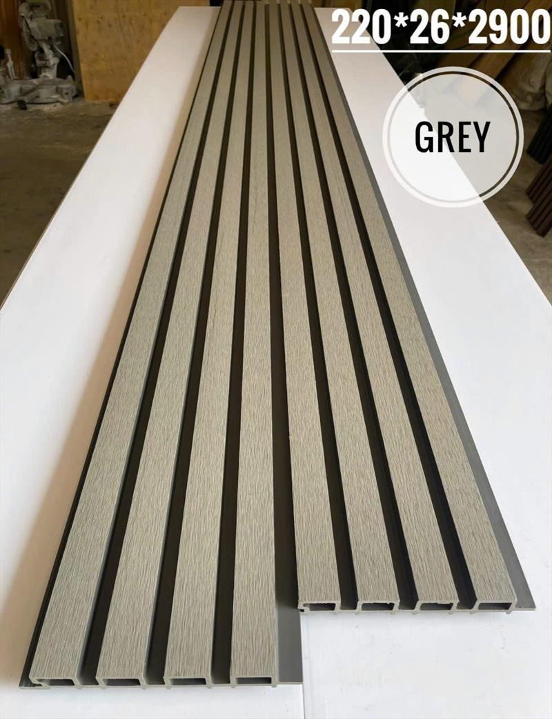 Lam 4 sóng ngoài trời Grey là vật liệu ốp tường/trần giả gỗ cao cấp làm từ gỗ nhựa composite (WPC) có thiết kế bề mặt với 4 sóng nổi (4 sóng xớ gỗ) và màu xám (Grey) sang trọng, chuyên dùng cho trang trí ngoại thất như mặt tiền, ban công, tường ngoài nhà, chống chịu thời tiết khắc nghiệt (mưa, nắng, ẩm), chống mối mọt và có tính thẩm mỹ cao.
