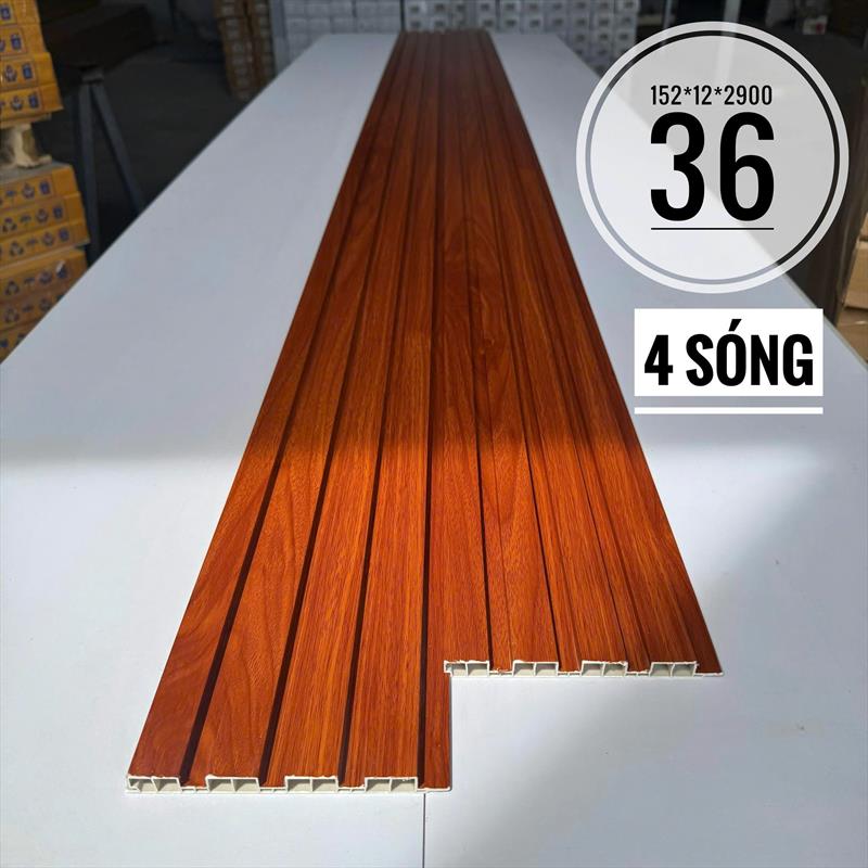 Lam nhựa ốp tường 4 sóng 36 là vật liệu trang trí nội thất dạng tấm, có cấu tạo từ nhựa PVC, bột gỗ/bột đá và phụ gia, được đùn ép thành hình sóng (4 sóng nổi) với kích thước đặc trưng (ví dụ: mã D36 hoặc E36), phủ lớp phim vân gỗ/đá, dùng để ốp tường, trần, vách ngăn, thay thế vật liệu truyền thống, có ưu điểm chống nước, chống mối mọt, cách nhiệt, chống ồn và thẩm mỹ cao