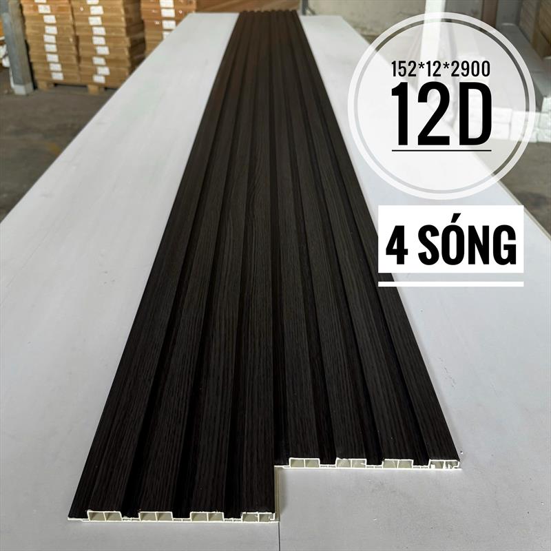 Lam nhựa ốp tường 4 sóng BM12D là loại vật liệu trang trí nội thất, làm từ nhựa gỗ composite (WPC), có thiết kế 4 đường sóng thấp, độ dày khoảng 12mm, dùng để ốp tường, trần, vách tivi, vách ngăn, thay thế vật liệu truyền thống, mang lại vẻ đẹp hiện đại, sang trọng, chống nước, chống ẩm, mối mọt, dễ thi công và bảo quản.