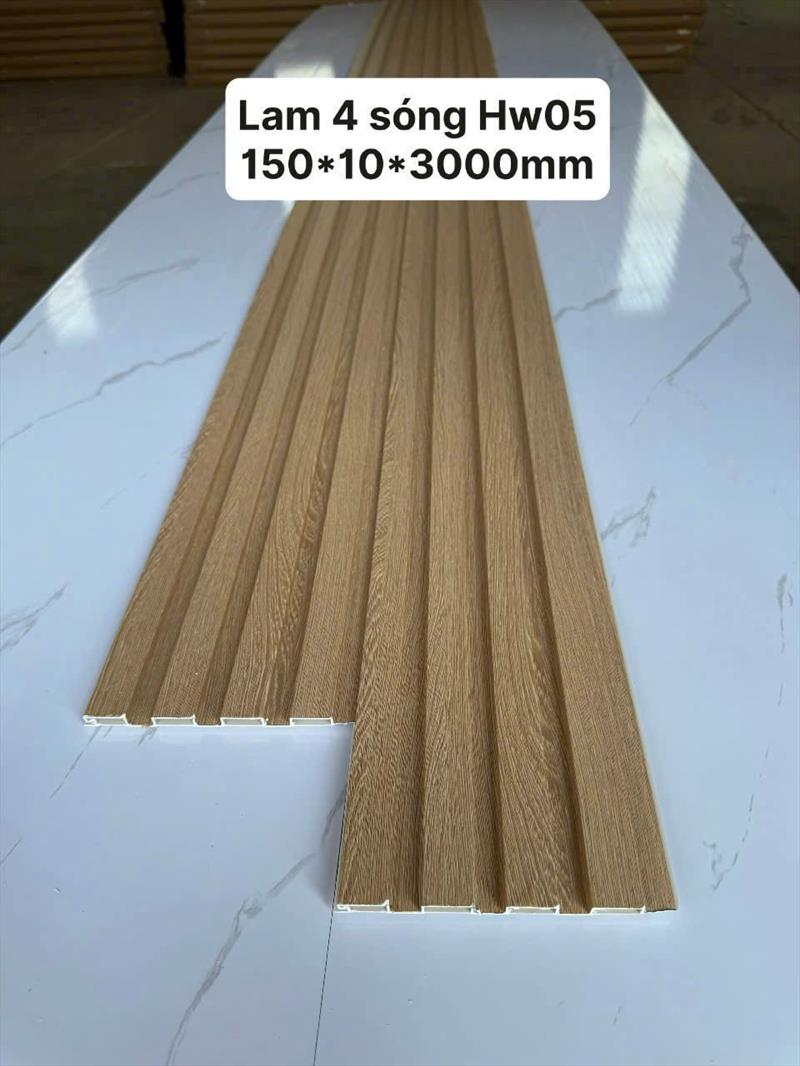 Lam ốp tường 4 sóng 05 (hay LS05, 4W05) là loại tấm nhựa giả gỗ trang trí cao cấp, bề mặt nổi 4 sóng, thường có vân gỗ màu nâu trung tính hoặc vàng đậm. Sản phẩm được sử dụng phổ biến để ốp tường, ốp trần, tạo điểm nhấn vách tivi, quầy kệ nhờ ưu điểm bền, chống nước, chống mối mọt và thi công nhanh chóng.