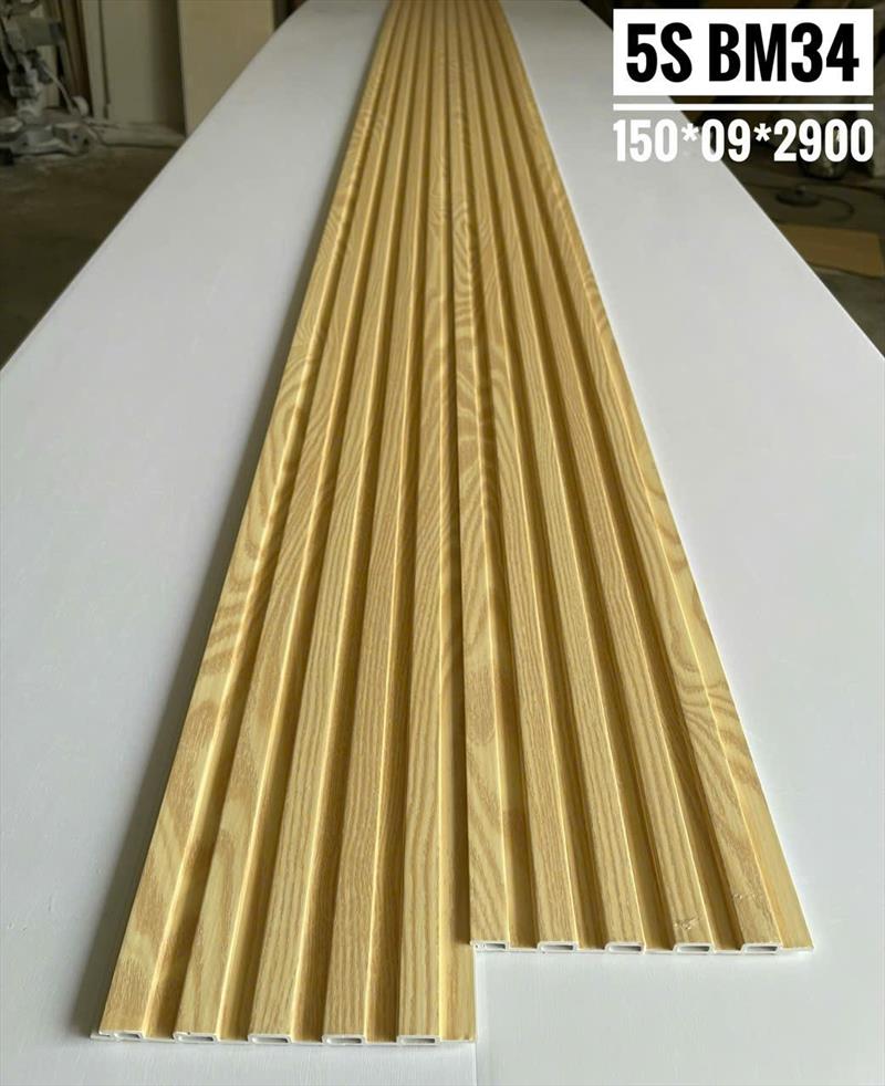 Lam sóng giả gỗ trong nhà 5 sóng BM34 là vật liệu ốp tường/trần trang trí nội thất, có dạng thanh với 5 đường gân sóng nổi lên bề mặt, mô phỏng vân gỗ tự nhiên, thường làm từ nhựa PVC & bột gỗ/đá (WPC), mã "BM34" là mã màu/mã sản phẩm cụ thể (ví dụ, mã màu vân gỗ đặc trưng), được dùng để tạo điểm nhấn thẩm mỹ, chống ẩm, cách nhiệt cho không gian nhà ở, văn phòng, giúp không gian sang trọng hơn với ưu điểm gọn nhẹ, dễ thi công và giá hợp lý.