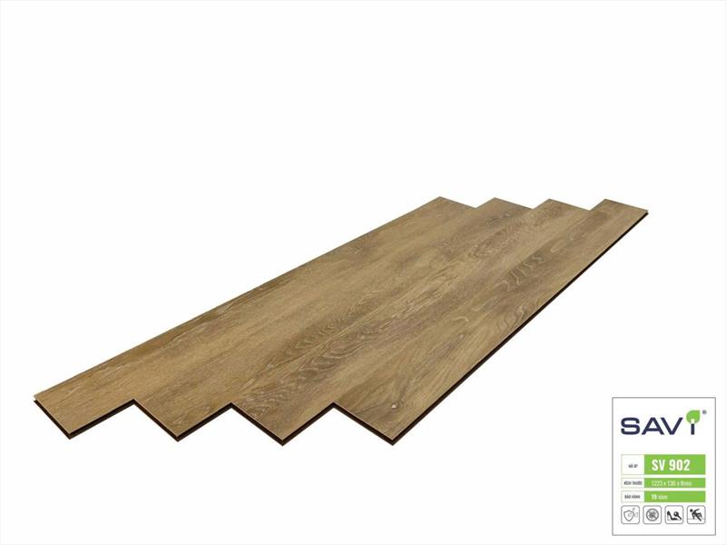 Sàn gỗ Savi SV902 được ưa chuộng nhờ màu sắc đa dạng, hiện đại và mức giá hợp lý, phù hợp với khí hậu nóng ẩm tại Việt Nam.