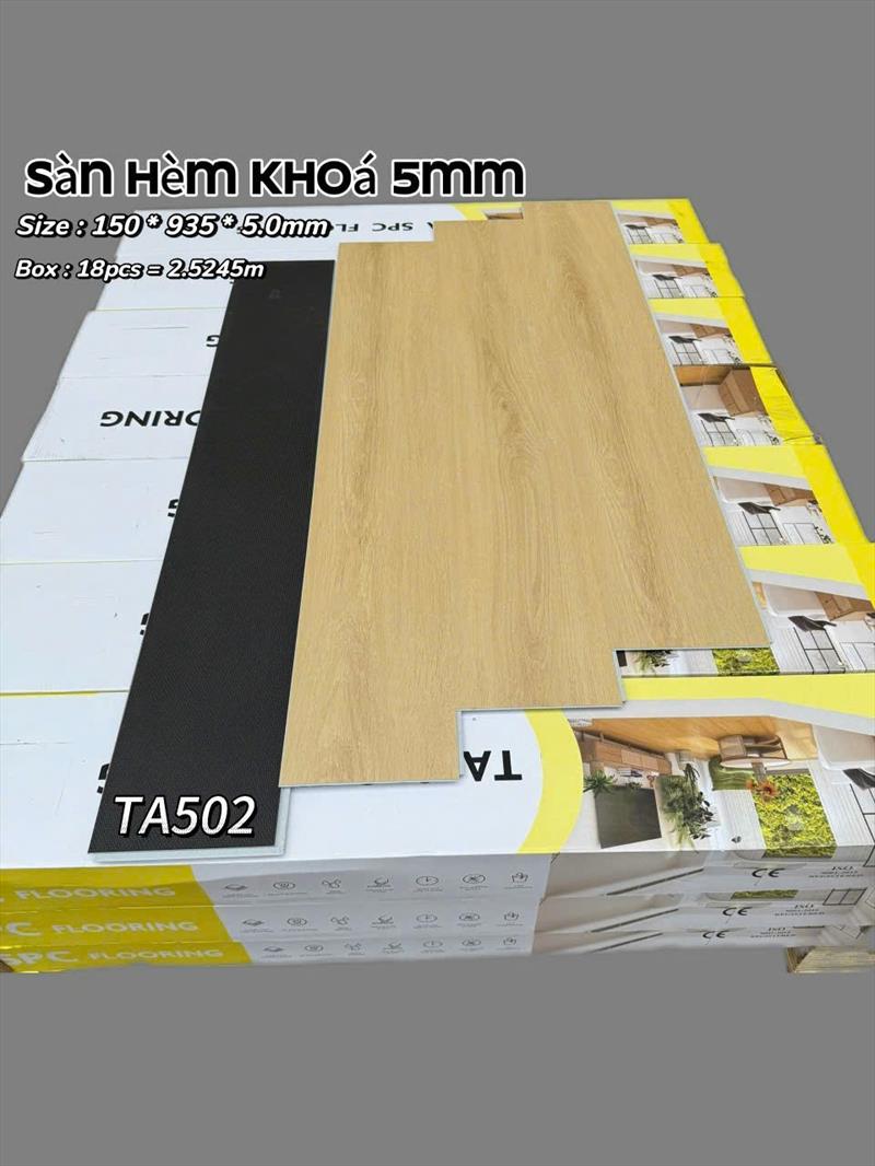 Sàn nhựa hèm khóa TA502 là loại sàn nhựa SPC (Stone Plastic Composite) với các đặc tính nổi bật như chống nước, an toàn cho sức khỏe và dễ thi công.