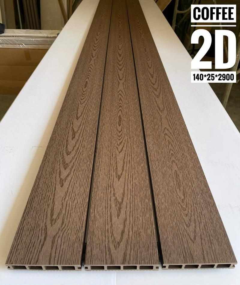 Sàn nhựa ngoài trời lỗ vuông 2D Coffee là loại vật liệu sàn gỗ nhựa (WPC) chuyên dụng cho ngoại thất, có màu nâu cà phê ấm áp, thiết kế có lỗ rỗng vuông (giúp thoát nước), bề mặt có vân gỗ 2D (vân sọc tinh tế), được làm từ bột gỗ và nhựa composite, có khả năng chống chịu thời tiết, nắng mưa, chống mối mọt tốt, dùng cho sân vườn, ban công, hồ bơi.