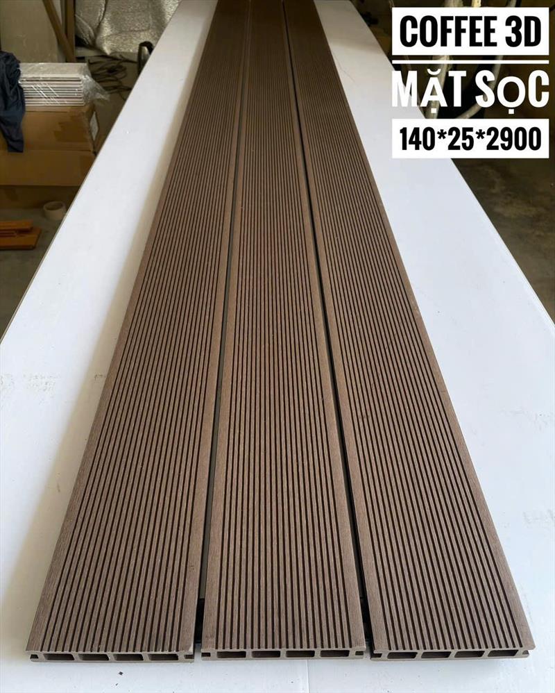 Sàn nhựa ngoài trời lỗ vuông 3D Coffee dày 25 mặt sọc là loại vật liệu lót sàn chuyên dụng cho ngoại thất, được làm từ bột gỗ, nhựa (PVC/HDPE) và phụ gia, có màu nâu Coffee (cà phê), bề mặt có đường vân sọc (hoặc vân gỗ 3D) tạo cảm giác tự nhiên, có thiết kế lỗ vuông ở mặt dưới giúp thoát nước tốt và giảm trọng lượng, độ dày 25mm phù hợp cho sân vườn, hồ bơi, ban công, có khả năng chống nước, chống mối mọt và chịu được thời tiết khắc nghiệt.