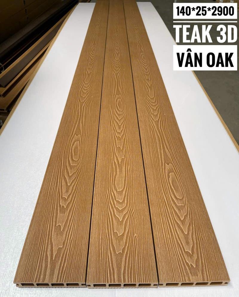 - Vật liệu: 55% bột gỗ tự nhiên 35% nhựa HDPE 10% phụ gia, tạo thành vật liệu gỗ nhựa composite (WPC) đồng nhất.