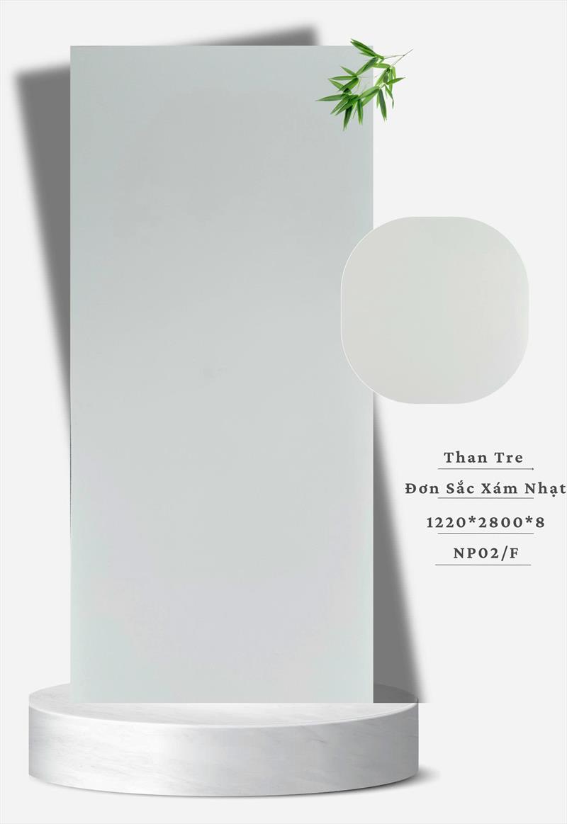 Tấm ốp than tre màu xám nhạt là vật liệu trang trí nội thất cao cấp, làm từ bột tre kết hợp nhựa và phụ gia, phủ lớp phim PET tạo bề mặt vân đá hoặc đơn sắc màu xám nhạt, mang lại vẻ đẹp hiện đại, tinh tế, chống ẩm, chống mối mọt, dễ vệ sinh, thi công nhanh chóng, và thường dùng ốp tường, trần nhà cho không gian tối giản, thanh lịch.