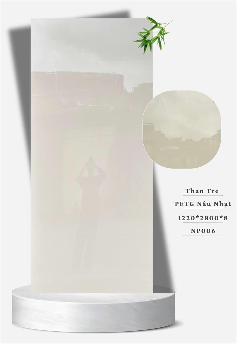 Tấm ốp than tre PETG nâu nhạt là vật liệu trang trí nội thất cao cấp, kết hợp bột than tre tự nhiên ép nhiệt tạo cốt lõi chắc chắn, bề mặt phủ màng phim PETG (Polyethylene Terephthalate Glycol) tạo màu nâu nhạt và hiệu ứng bề mặt (thường là vân gỗ, vân đá hoặc đơn sắc), mang đến vẻ đẹp hiện đại, sang trọng cùng tính năng chống ẩm, chống mối mọt, dễ thi công và an toàn cho sức khỏe (không formaldehyde), thường dùng ốp tường, vách ngăn.