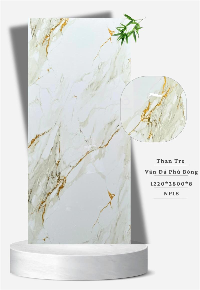 Tấm ốp than tre vân đá phủ bóng là vật liệu trang trí nội thất hiện đại, kết hợp bột than tre và nhựa cao cấp tạo cốt nền bền chắc, phủ lớp film PET tạo vân đá tự nhiên và bề mặt bóng loáng như gương (phủ bóng), giúp chống trầy xước, dễ vệ sinh, mang lại vẻ đẹp sang trọng, hiện đại, thân thiện môi trường, thay thế đá thật với giá hợp lý.