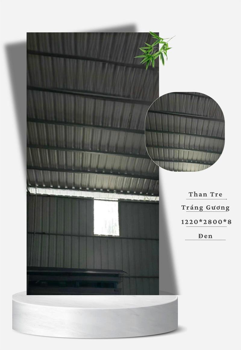 Tấm ốp than tre vân tráng gương là vật liệu trang trí nội thất cao cấp, kết hợp lõi sợi than tre ép (bền chắc, chống ẩm, kháng khuẩn) và bề mặt phủ lớp film PET/PVC tráng gương bóng loáng (tạo hiệu ứng phản chiếu sáng như gương thật nhưng an toàn hơn, nhẹ hơn). Sản phẩm có nhiều màu sắc (bạc, vàng, đen), đa dạng vân hoa (vân gỗ, vân đá) và tạo cảm giác không gian rộng rãi, sang trọng, thay thế gương kính truyền thống trong ốp tường, trần.