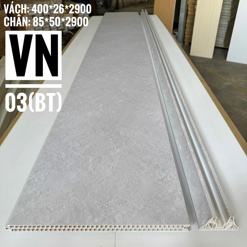 Vách ngăn phòng 2 mặt VN03 là tấm nhựa PVC cao cấp (kết hợp bột đá) thế hệ mới, thường có màu trắng vân gỗđược dùng để phân chia không gian mà không cần xây tường gạch. Sản phẩm có kích thước phổ biến, cấu trúc tổ ong, 2 mặt hoàn thiện thẩm mỹ, chống nước, chống mối mọt, thi công nhanh.