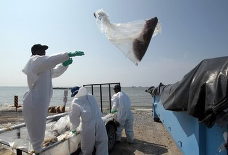 Hàng nghìn thùng dầu tràn ra vịnh Mexico mỗi ngày kể từ khi giàn khoan Deepwater Horion thuộc quyền sở hữu của tập đoàn BP nổ tung và chìm vào ngày 20/4. BP đang chịu sức ép bịt giếng dầu rò rỉ sau khi các nỗ lực của họ tỏ ra không hiệu quả.