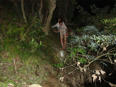 Cả đoàn men theo ghềnh đá qua khe, ai cũng phải cúi gập người hoặc chống gậy để không trượt ngã. Thêm 30 phút vô vọng, chúng tôi đành quay về kèm theo lời xin lỗi đối với các “đồng đội” CSMT. Một chút an ủi khi nhận được lời động viên: “Anh em đi làm nhiều nên hiểu mà, khi nhân mối không bám được bè thì tình hình xoay chuyển nhanh lắm”.